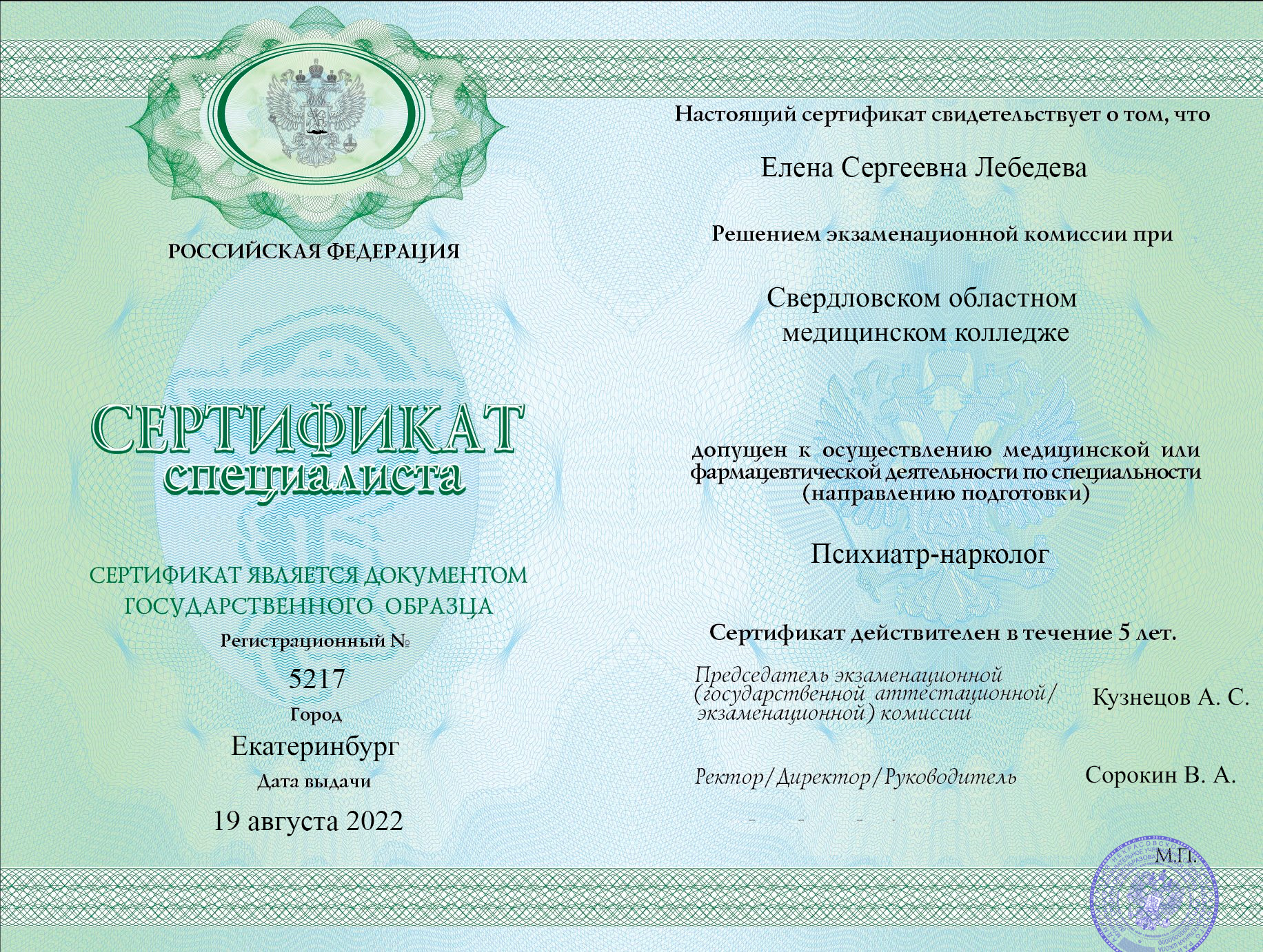 Елена Сергеевна Лебедева врач нарколог клиники доктора Стукаловой в Белом Яре